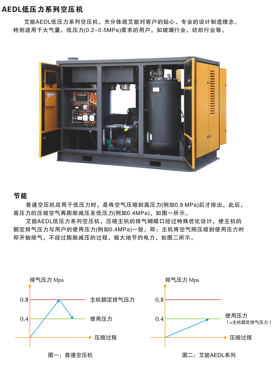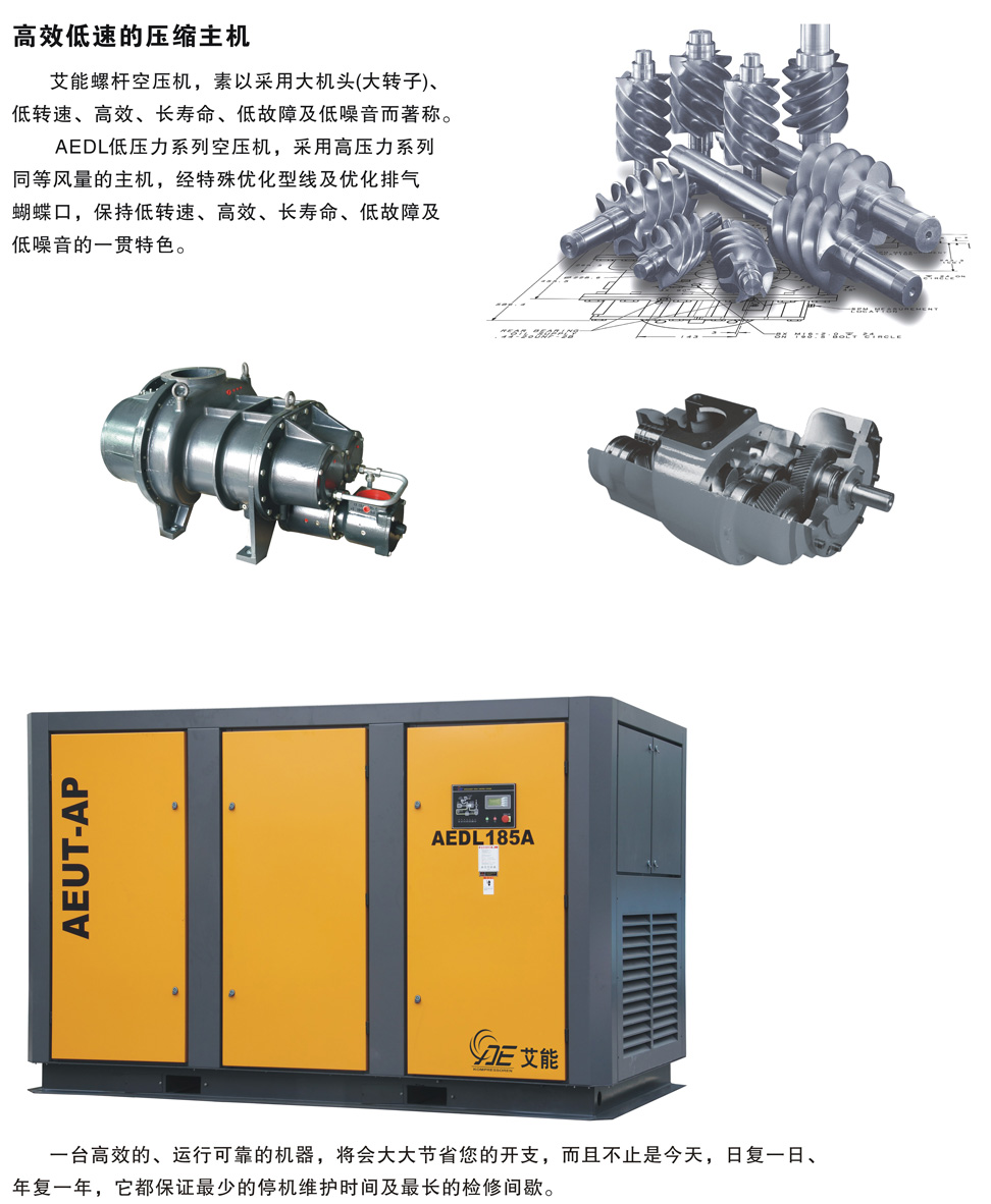艾能壓縮機(jī)是高效、品質(zhì)卓越的,憑借雄厚的技術(shù)力量和豐富的制造經(jīng)驗(yàn),艾能螺桿壓縮機(jī)品種及規(guī)格齊全,能夠滿足不同用戶對(duì)氣體品質(zhì)、氣量大小、使用工況等的不同要求,主要產(chǎn)品有:固定式螺桿空壓機(jī)、雙級(jí)壓縮永磁變頻空壓機(jī)、變頻空壓機(jī)、永磁變頻空壓機(jī)、低壓力螺桿空壓機(jī)、工程用移動(dòng)式螺桿空壓機(jī)、蝸旋式螺桿空壓機(jī)、礦用移動(dòng)式螺桿空壓機(jī)、無(wú)油螺桿空壓機(jī)、無(wú)油中高壓壓縮機(jī)等等。對(duì)特種行業(yè)或特殊要求,艾能公司更擅長(zhǎng)按照用戶要求定制特殊的壓縮機(jī)。