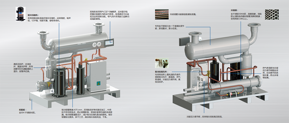 由于冷熱交接器、蒸發(fā)器及氣水分離器采用不銹鋼材質(zhì),不會由于長時間使用而產(chǎn)生腐蝕變質(zhì),效果更穩(wěn)定。